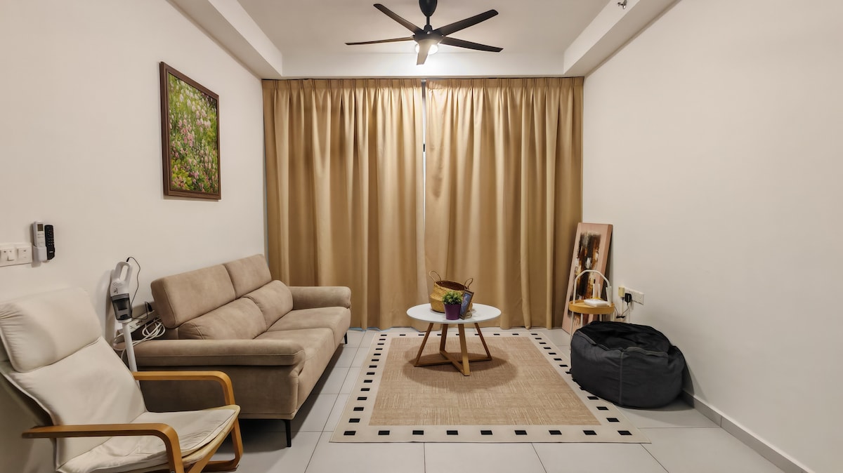 Et varmt og hyggeligt sted at slappe af og en god nats søvn. En kort gåafstand til Juru Sentral, Icon City, restauranter, madbane, caféer, apotek og dagligvarebutik. Køreafstand: 5 minutter til Icon City og Auto City 10 minutter til Penang Bridge 12 minutter til BM KTM Station 10 minutter til hospitalet 30 minutter til Georgetown Penang Enheden er veludstyret med aircondition, højhastigheds-wi-fi, Netflix, tv-boks, vaskemaskine, veludstyret køkken og service. Perfekt til par, bff, soloture!