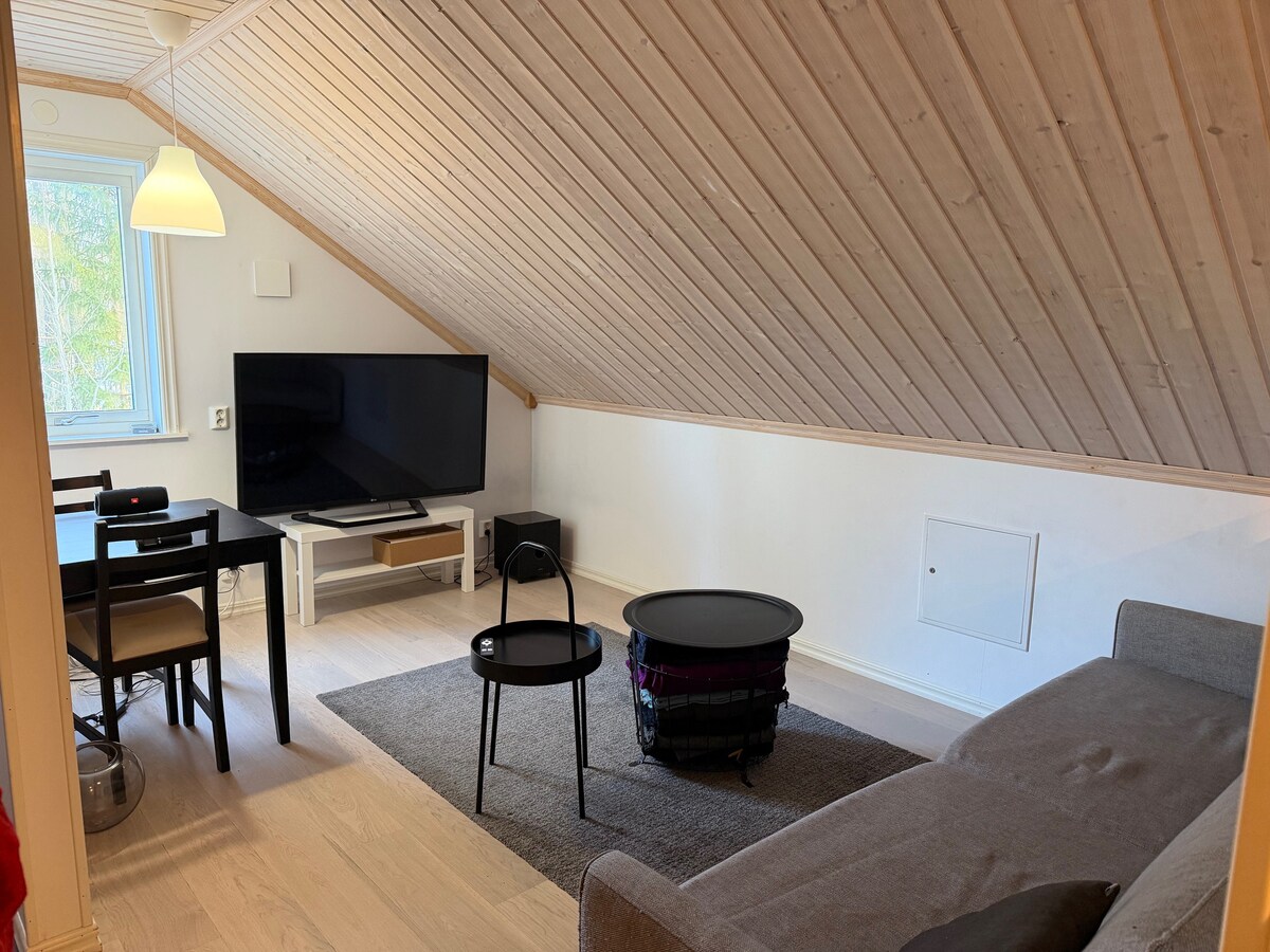 Værelse med skrivebord, lænestol, bord og sovesofa 140 cm. Balkon. Køkken med køkkenbord, grundlæggende køkkenudstyr, komfur, ovn, opvaskemaskine og køleskab. Badeværelse med bruser. Gang med privat udgang til trappeopgang. I gangen er der også en låst lydisoleret dør til resten af lejligheden, hvor jeg bor. I alt 35 kvadratmeter. Sommarro ligger 15 minutters cykelsti fra byens centrum. Flere buslinjer stopper i nærheden. I nærheden ligger restauranter og dagligvarebutikker. Den urbane skov indbyder til gåture i naturen.