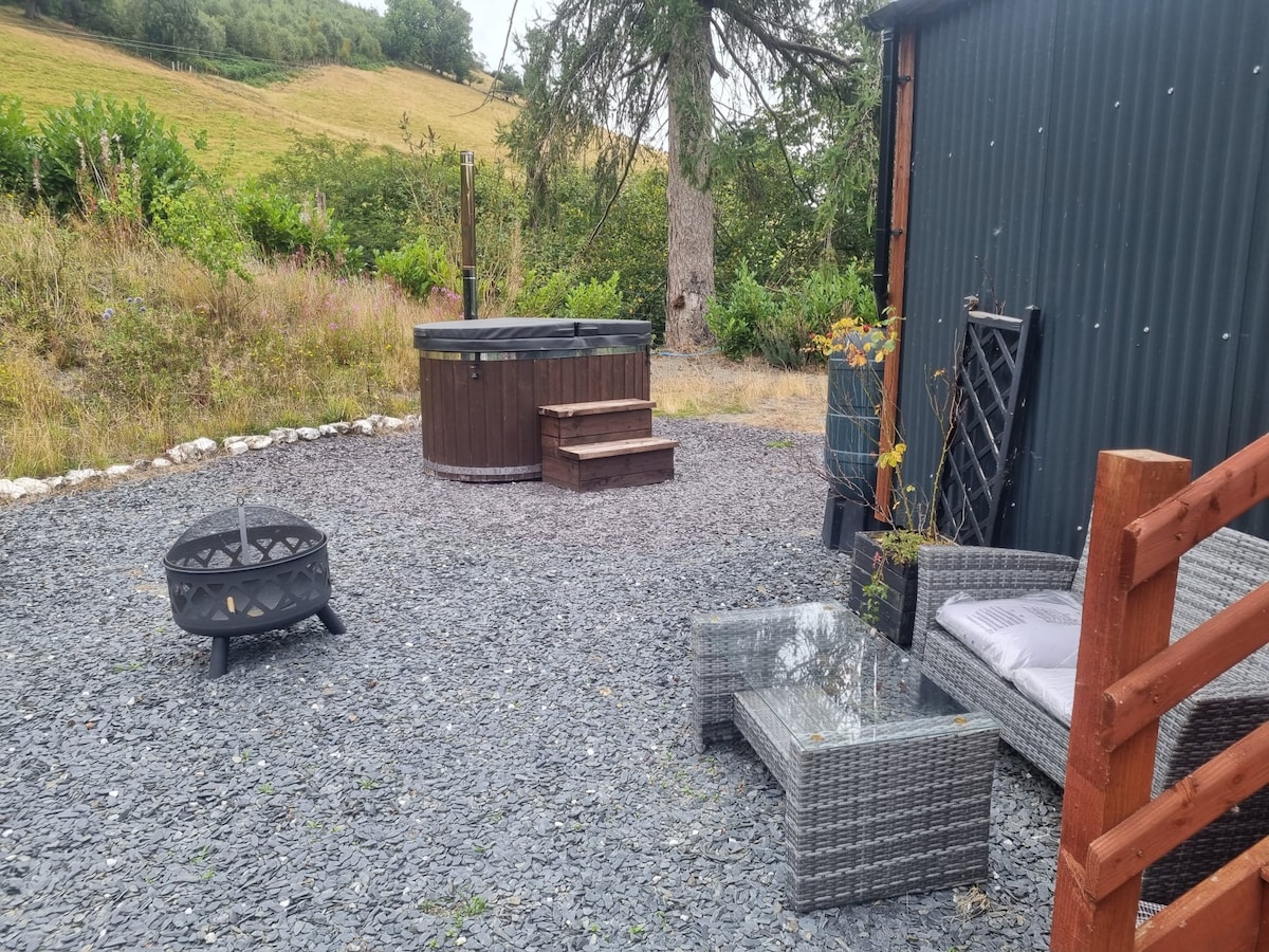 Adam og Jane byder dig velkommen til deres 2 luksuriøse hyrdehytter, der ligger på en juletræsgård i Cambrian-bjergene. Dit eget afsondrede indhegnede område med parkering. Slap af og slap af i spabadet efter at have besøgt de lokale faciliteter omkring. Devils Bridge Falls, Hafod Estate, Teifi Pools. Gasgrill (maj-september) med udendørs siddepladser og bålplads med betagende udsigt. Sengetøj, håndklæder og kåber er inkluderet. Dobbeltseng. Ensuite. Tekøkken. Air Fryer. Brændeovn.