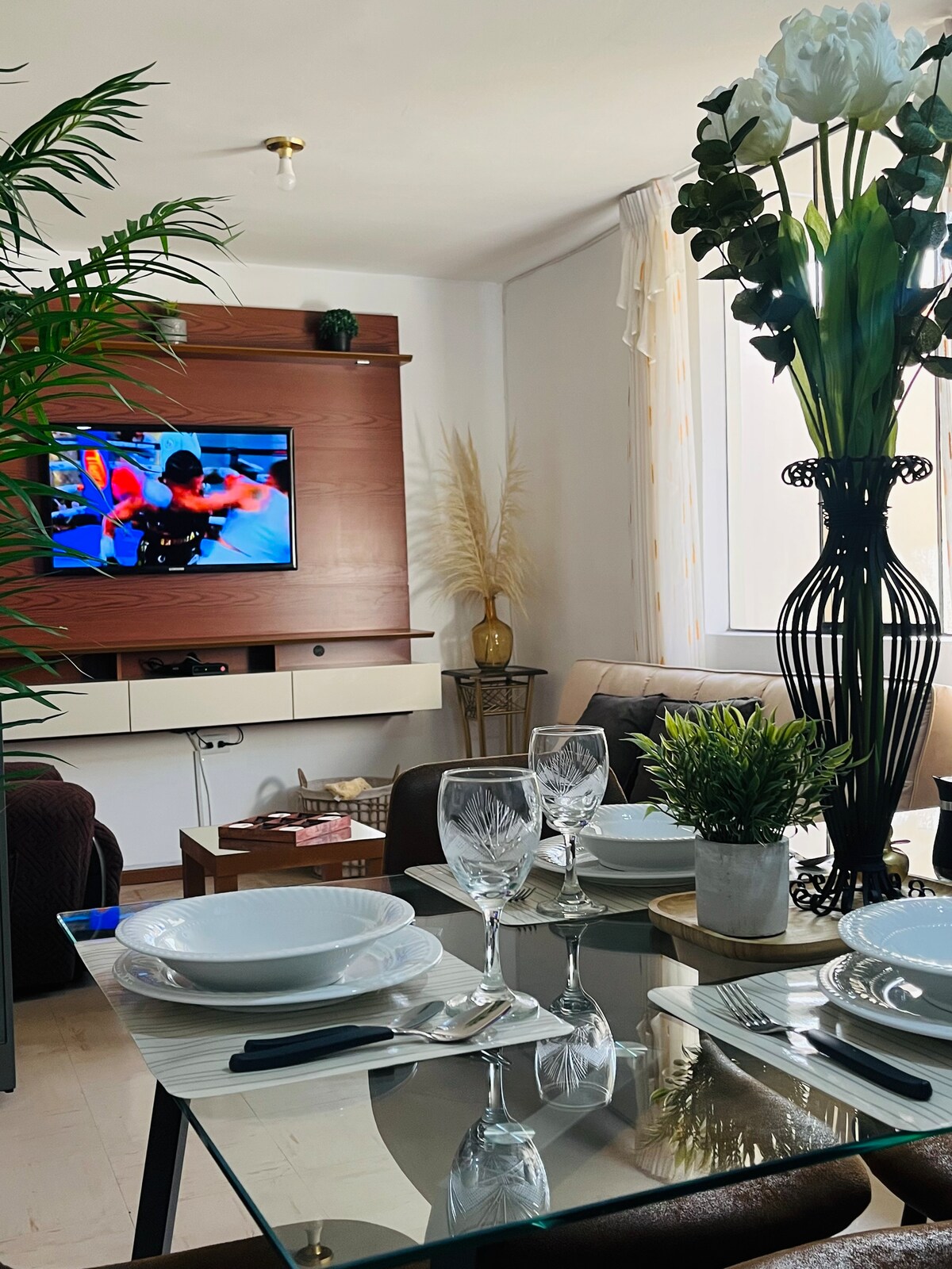 Lejlighed 5 minutter fra Mall Aventura Roligt område, fuldt udstyret TV med WiFi, Netflix og Amazon Boligområde 1 soveværelse med kingsize seng og 1 King size sovesofa 10 minutter fra byens centrum og tæt på landskabet 1 badeværelse Fuldt udstyret køkken med gas- og induktionskomfur Sikkerhedskameraer, der styres fra stuen Vaskemaskine og tørretumbler tæt på busterminalen Der gives information og faciliteter til turisme Vi vil med glæde byde din familie velkommen