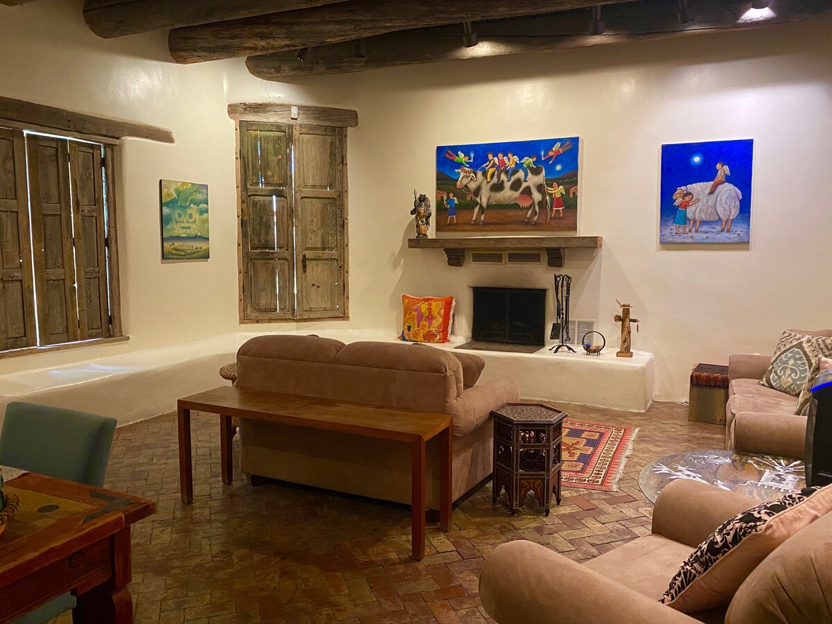 Kunstneren Rod Goebel har skabt dette fredelige fristed – en bolig, kapel, afskærmet terrasse og gæstehus på et fantastisk seks hektar stort, smukt, fuldt indhegnet landligt sted. Nyd en overdækket terrasse, grill, spabad og delvist køkken med alle fornødenheder. Kun 12 minutter fra byen, nær Taos Ski Valley-vejen. Vores ejendom, der er kæledyrsvenlig, hellig og privat, blev udnævnt til den bedste Airbnb i Taos i 2025 – "Only in New Mexico" online. Kom og slap af med kunst, naturens pragt og ægte afslapning under stjernehimlen.