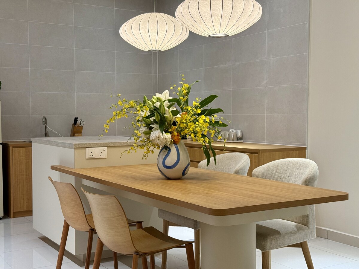 Uanset om det er en familieferie, en sammenkomst med venner eller en forretningsrejse, er vi forpligtet til at give dig en ren, rummelig, komfortabel og hyggelig bolig, så hvert øjeblik af dit ophold er let og behageligt. 🏡 Ejendommens højdepunkter: 🛏️ 11 senge • 1 kingsize-seng • 3 queensize-senge • 2 enkeltsenge • 1 køjeseng • 1 babyseng 🛁 4 soveværelser med eget badeværelse (hvert værelse har sit eget badeværelse) • 📺 75 tommers smart-tv • 📡 Wi-fi • 🛋️ Lædersofa (kan foldes ud til at ligge fladt) • 🎛️ Central aircondition i stuen (3,5 hestekræfter) • 🧊 Køleskab med automatisk ismaskine • 🍪 Fyldt ovn • 🍻 Bord på baren • Vanddispenser💧 • 🧥 Walk-in-closet • 🔒 Sikkerhed døgnet rundt 🧾 Opmærksom service • 🪥 Gratis engangshåndklæde og -tandbørste Fremragende 🌆 beliggenhed Praktisk beliggenhed i et modent samfund med fulde faciliteter omkring: • Restauranter med🍲 forskellige retter • 🏪 Døgnåben nærbutik • 🛍️ Stort indkøbscenter • 🎉 Massiv underholdning og rekreation 💙 Særlig feedback: Som tak til alle gæster, der bor hos os, sender vi 50 RM tilbage efter udtjekning som et lille tegn på din tillid og støtte for at give en 5-stjernet anmeldelse.