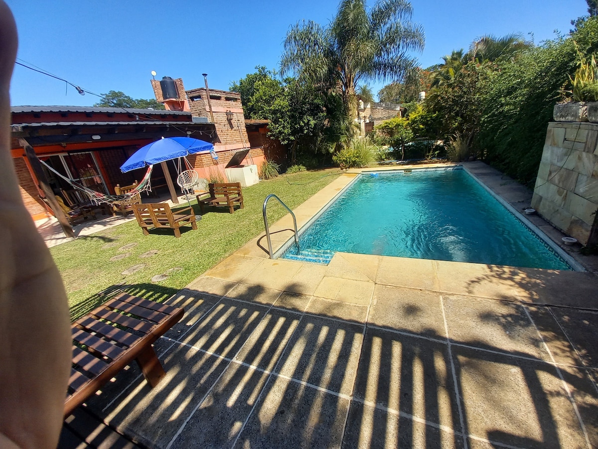 Alojamiento para 12 personas, amplio parque de 2500m2 , totalmente comodo y seguro, 4 habitaciones con AA y tv digital hd, piscina, parrilla y fogonero; ubicado en barrio pescadores a 200mtrs del río. Ideal para descansar en familia.
