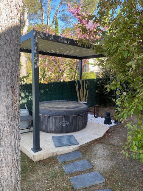 Uafhængigt studie på 25m2, klassificeret som 3-stjernet af Gîtes de France. Tilknyttet hovedvillaen, så du kan nyde dens have og private jacuzzi (ved forudgående reservation med et tillæg på 5 € pr. nat, der betales på stedet). Det er fuldt udstyret og har en udtrækkelig dobbeltseng, der giver plads til en sofa, så du kan nyde en stor plads i løbet af dagen. Udstyret køkken, reversibel aircondition, badeværelse med toilet og brusebad, fiber-WiFi, tv.