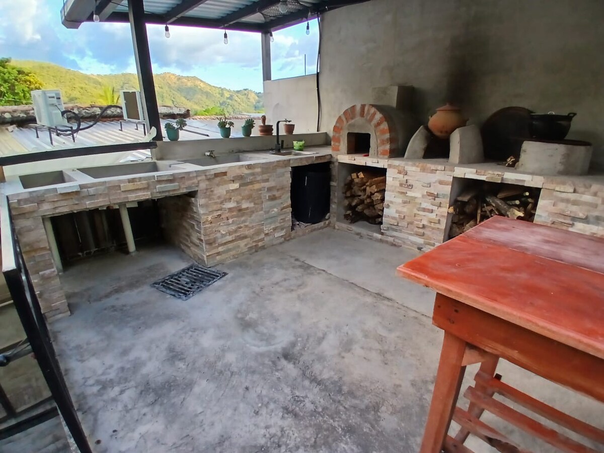 Inden du læser beskrivelsen med alle detaljerne, vil jeg gerne give dig nogle oplysninger, inden du booker denne lille hytte i de smukke bjerge i Dulce Nombre de Maria,Chalatenango. Du skal ikke booke Jaraguah, hvis du er bange for at sove et sted, der er afsidesliggende, er bange for naturen, ikke er villig til at dele ejendommen med min generes familie eller forvente et 100% insektfrit miljø. Hytta ligger et par minutter fra byen i et meget roligt nabolag.