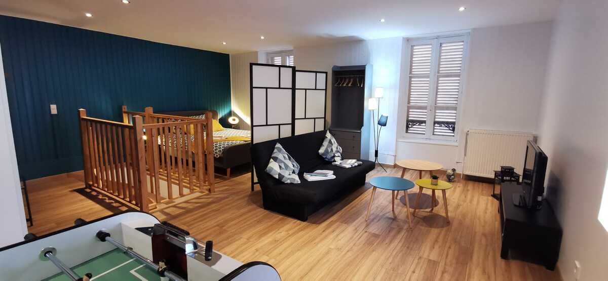 Cool, komfortabel og rummelig (90 m2) bolig på 2 etager. Stort køkken , stue og terrasse på gadeplan og fantastisk 1 soveværelse med dobbeltseng i åbent plan på 2. sal. Dette fredfyldte hjem, der er en ombygget bondegård på toppen af et bjerg i en middelalderlandsby 16 minutter fra A6, er et ideelt stop på ferien i Alperne eller Sydfrankrig. Bemærk venligst - der er en studiolejlighed med egen indgang i nederste stueetage - udlejes separat.