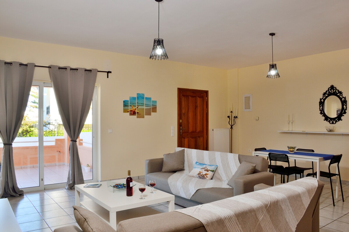 SOFOKLIS APTS 3 Wonderful sea view at an ideal house, offering all comforts. Which can easily accommodate 4 or 5 people. Only 3minutes from the famous Stalos beach.Our garden is full of fruits and vegetables for you. Come to us to experience the Cretan hospitality.