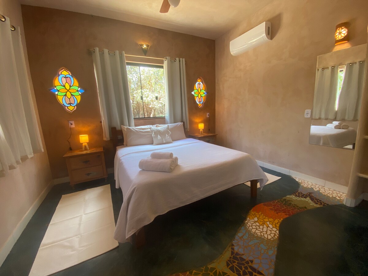 Bio-chaléet blev bygget på vores grund, der ligger 1 km fra byen. Det er økologisk, charmerende og anvender forskellige teknikker til biokonstruktion. Vi er omgivet af skov, fugle (mange araer) og ro. Da vores vært er en akkrediteret guide, er du velkommen til at stille spørgsmål om attraktioner og information om Chapada. Vi bor på vores gård, og bio-chaléet er tættest på vores hus. Føl dig sikker og støttet i et familiært miljø, alt er lavet af os og med kægte kærlighed.