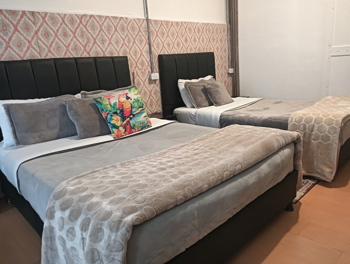 Oplev komforten i vores rummelige værelse i Bogotá, der er udstyret med en hyggelig dobbeltseng, en enkel seng og en behagelig sovesofa. Det moderne og funktionelle design kombineres med hyggelige detaljer og tilbyder en alsidig bolig, der er ideel til familier eller grupper. Nyd et behageligt ophold med alle de faciliteter, du har brug for.