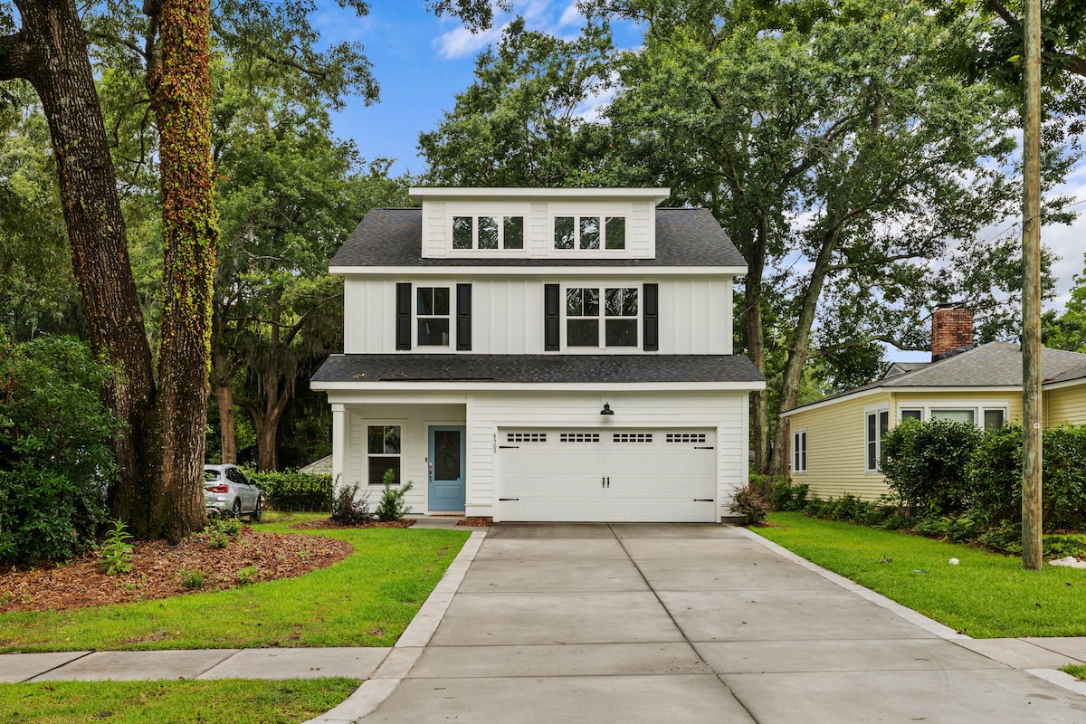 Bo i denne nybyggede bolig i Park Circle! Vores centralt beliggende hus har et fuldt udstyret køkken, baghave, bålsted, en Pit Boss-grill og den nye huslugt! Alle fire generøse soveværelser har luksuriøse kingsize-senge, 50" smart-tv og det blødeste sengetøj. Køretid i minutter: 15 - Downtown Charleston 10 - Credit One Stadium 10 - CHS-lufthavn 20- Shipyard Park 25 - IOP Beach Oplev Charleston med os, og få mere at vide nedenfor.