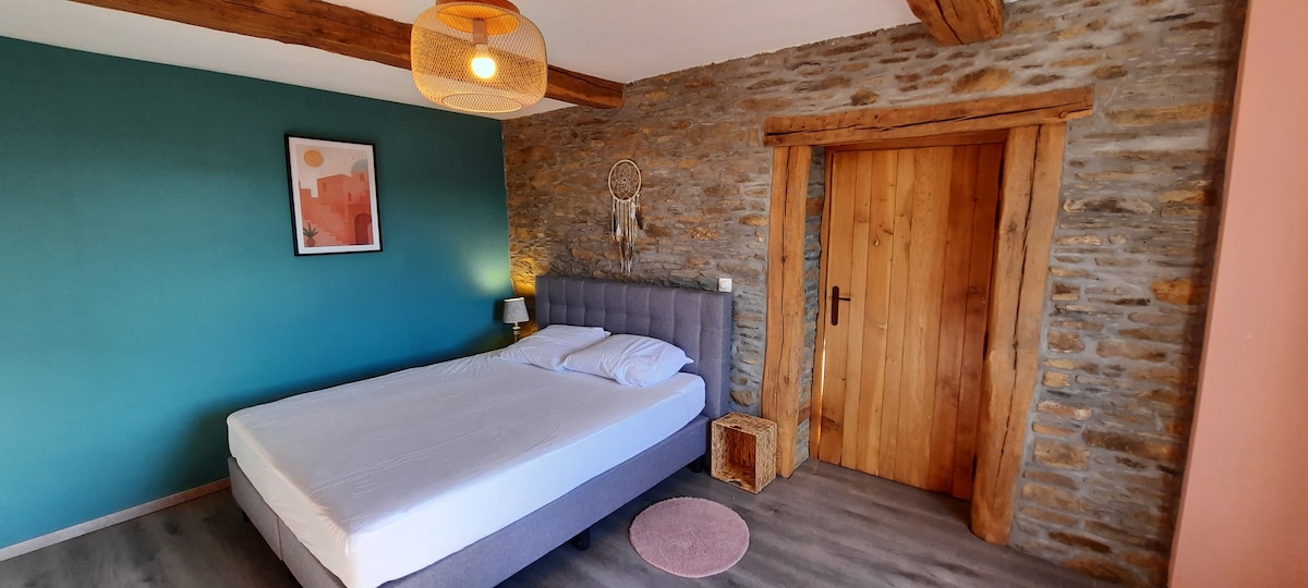 "Charmerende hus med 3 soveværelser og 2 badeværelser, der er udstyret med alle de bekvemmeligheder, du har brug for. Fordyb dig i den diskrete elegance Au Fil deBoh'O, et fredeligt tilflugtssted beliggende i hjertet af Ardennerne. Denne unikke gite inviterer dig til en naturlig smuttur, hvor komfort og ro mødes i betagende omgivelser. La Semois ligger ca. hundrede meter væk. .Dette sted er ideelt til sportsaktiviteter ( mountainbiking, kajakroning, vandreture...) Der er ikke noget udendørs område.