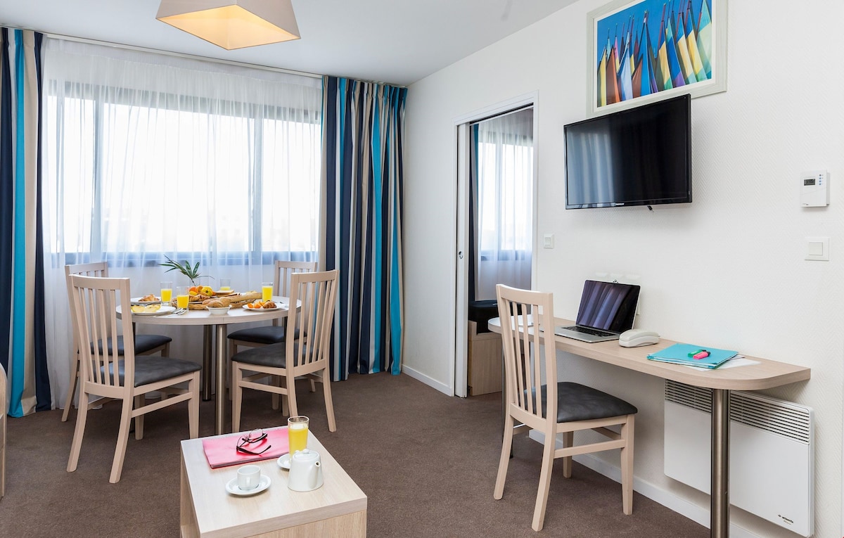 MaranZen i hjertet af Poitevin-marsken, 3 minutter til fods fra havnen, midt i en park på mere end 1,2 hektar i en sikret bolig med swimmingpool + gratis parkering, denne lejlighed på 35 m² omfatter 4 senge til voksne, 1 soveværelse, badeværelse, badekar, barneseng, toilet, stue, køkken + have & privat terrasse. Til din rådighed: sengetøj / wifi / mikroovn / TV + / BT-højttaler / hårtørrer / strygejern / brødrister / vaskemaskine / køleskab, ovn osv. Rolig, træer. Perfekt til et Zen-ophold.