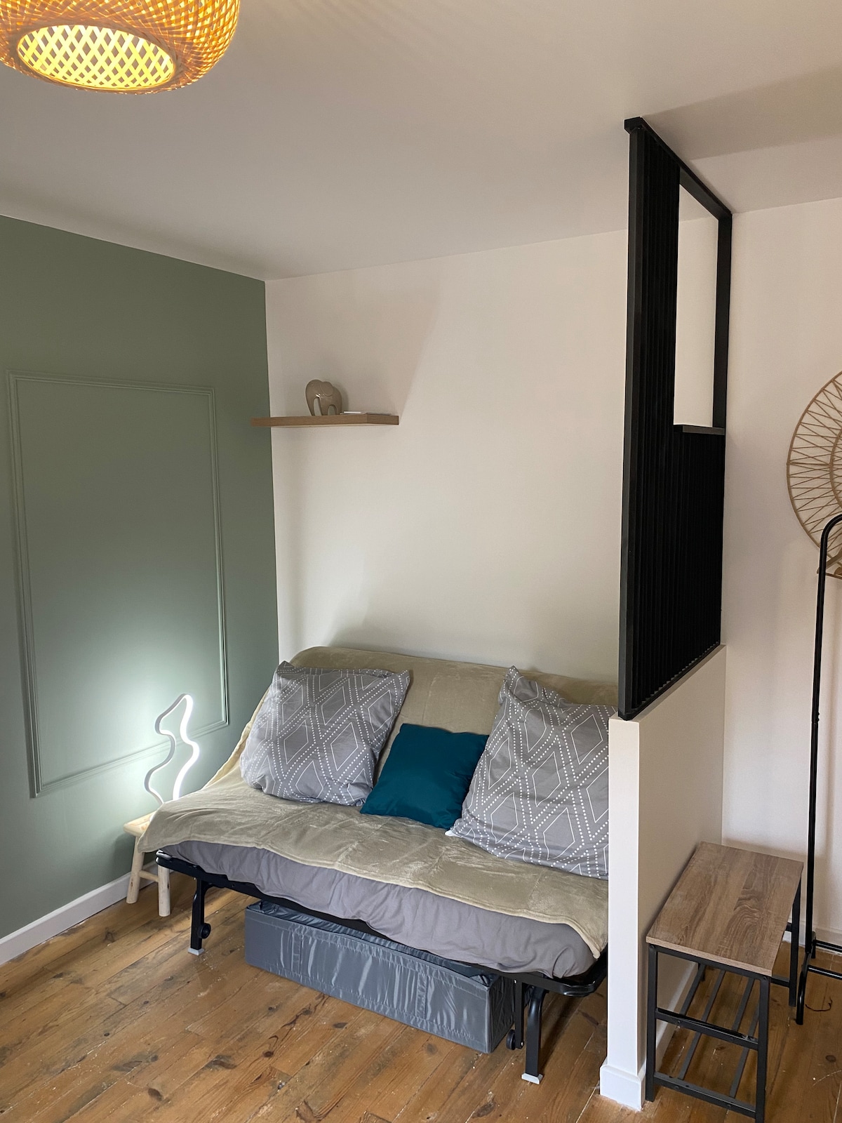 Charmerende indkvartering, duplex med alle de bekvemmeligheder, du har brug for til at hygge dig. Med en udendørs, du kan nyde fuldt ud. Boligen er 50 m2. Nedenunder finder du et fuldt udstyret køkken, og ovenpå har du et soveområde med en komfortabel seng (200/200) samt en sovesofa, der kan rumme to andre personer. Du finder også et tv-område, spil og bibliotek. Roligt nabolag. Der er sengetøj/badehåndklæder. Wi-fi. Netflix. Freebox-tv-kanaler.