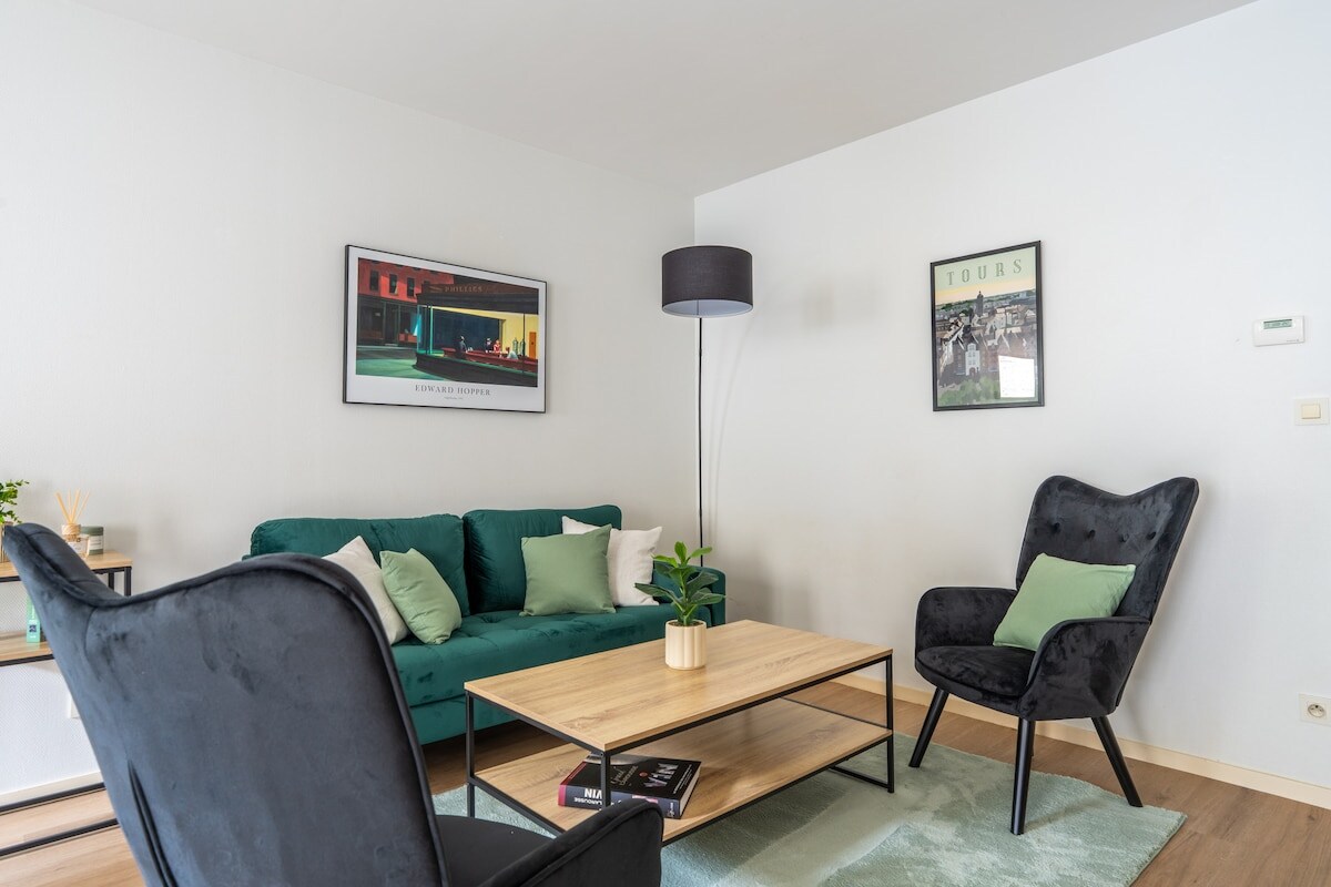 Velkommen til vores charmerende lejlighed beliggende i hjertet af det gamle Tours, lige ved foden af den smukke Basilika Saint Martin. Hvis du leder efter en behagelig og ideelt beliggende bolig til at udforske byen, behøver du ikke lede længere. Vores lejlighed tilbyder en perfekt blanding af moderne komfort og historisk charme, og beliggenheden er simpelthen enestående. Du skal bare gå ud af hoveddøren for at befinde dig i hjertet af Tours' pulserende atmosfære.
