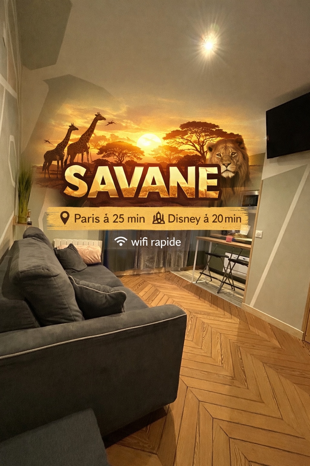 Velkommen til denne hyggelige lejlighed på 45 m2, komfortabel og moderne, udstyret til 4 personer (+1 baby) med gratis sikker parkering i en luksusbolig et par minutter med bus fra Disneyland Park✨, shoppingdalen 🛍️ og Val d'Europe indkøbscenter. Med en ideel beliggenhed er du 100 meter fra busstoppestedet, restauranter og butikker (supermarked, bageri, apotek) Et stille og grønt nabolag. ⚠Terrassen er ikke tilgængelig fra 4. november til slutningen af april på grund af byggeri 🚧