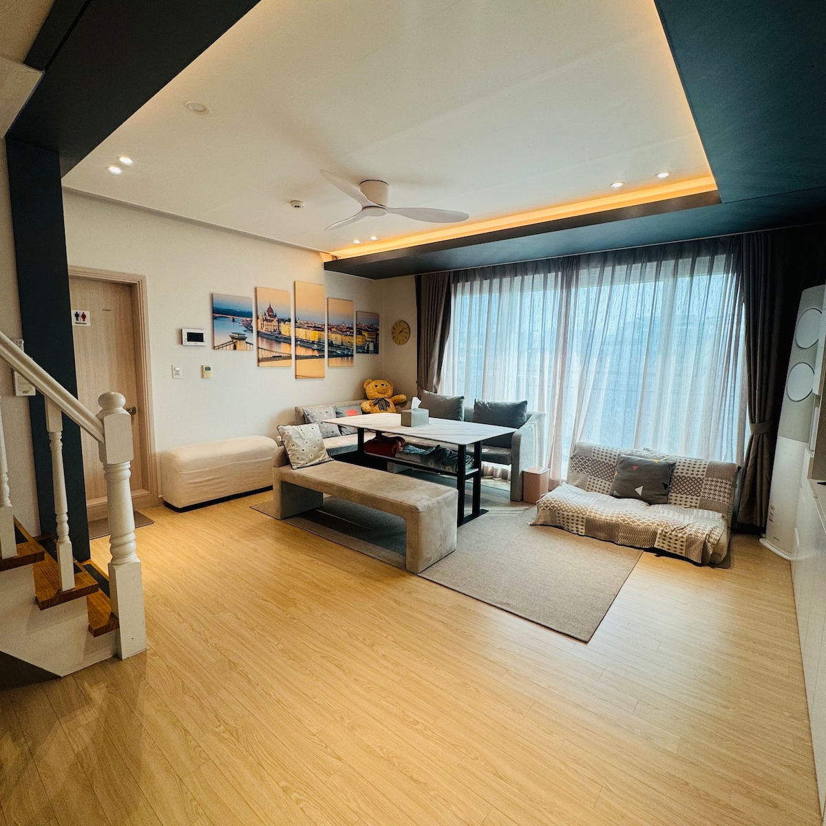 Denne rummelige bolig er velegnet til hele familien med en loftsstruktur. 1 km fra Cheonan Asan Station Gratis parkering til rådighed [Privat område] * Stue, 2 soveværelser og 1 badeværelse Soveværelse 1) 1 dobbeltseng Soveværelse 2) 1 dobbeltseng *Loft : Stue, 1 soveværelse og 1 badeværelse Soveværelse 1) Dobbelt senge [Faciliteter og service] * 50 m til nærbutik til fods (CU Asanjangjae Branch) * Hometown Hall på første sal i bygningen (jeg anbefaler på det varmeste Asan-restauranter/familiesammenkomster eller menuer anbefalet af gæster) Køkken) Service til 6 personer, gryder, pander, riskogere, Vinglas, ølglas, ølglas, ølglas, soju-glas Badeværelse) Shampoo, balsam, kropssæbe, Håndvask, håndklæde Ekstra) Tørretumbler, mikrobølgeovn, riskoger Wi-fi til rådighed