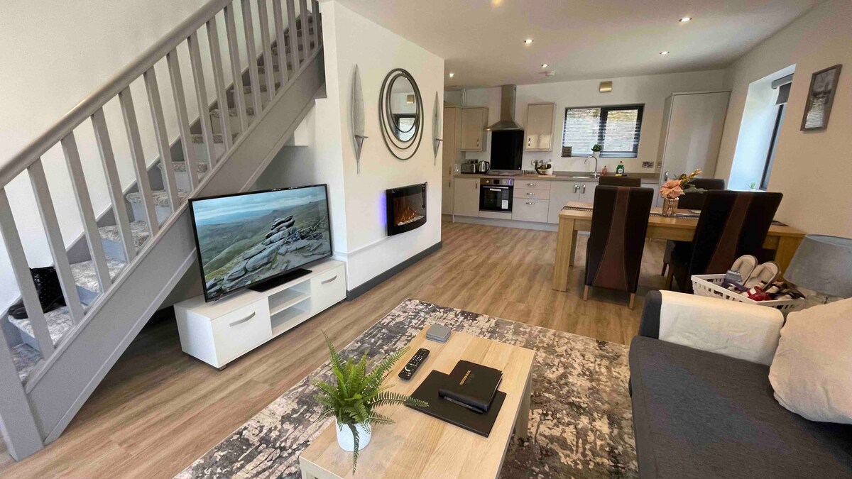 Beliggende i hovedstaden i Peak District og ny i 2021. Vores gæster vil føle sig hjemme i vores bolig, der er fyldt med masser af hjemlige funktioner og alt, hvad du har brug for til et afslappende ophold. Med en super kingsize-seng for maksimal komfort. Beliggende i centrum af Chapel-en-le Frith med alle de lokale faciliteter lige uden for døren, en ideel beliggenhed til at bo i en hytte med selvforsyning, der giver dig nem adgang til de omkringliggende områder, uanset hvad du måtte have planlagt for dit ophold.