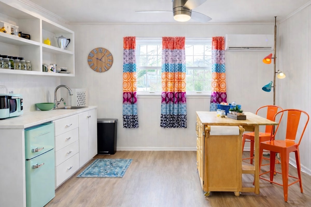 Få kontakt med venner og familie i vores nyrenoverede gæstehus. Den største stue er åben og lysfyldt. Et godt sted at nyde en familie spil aften. Soveværelserne har lige den rigtige størrelse til at nyde en afslappende nats søvn. Har du brug for at vaske tøj - intet problem, dette gæstehus har sit eget vaskerum med stabelbar vaskemaskine og tørretumbler. Steg s'mores ved bålpladsen i baghaven, og nyd at se ildfluerne fra terrassen.
