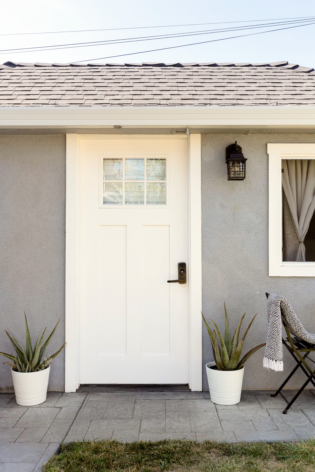 Hyggelig, privat studiolejlighed i baghaven i beroligende nuancer af grå