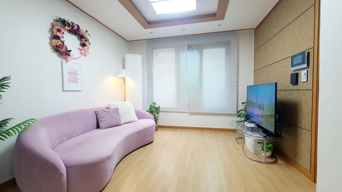 💜 Dette er et roligt hus på 2. sal i en ny bygning. 💜 Vi tilbyder en kvalitetsbolig med et rent og dejligt koncept til en rimelig pris. 💜 23 pyeong rummelig og behagelig bolig. Seng og sengetøj i hotelstil. Uafhængig spisestue med stort bord til 6 personer. 50 tommer smart-tv (du kan se din personlige konto på YouTube, Netflix og Teabing) Ingen yderligere 💜 gæster tilladt. Umiddelbar udsmidning uden refusion, hvis de bliver fanget (besøgende må ikke komme ind) ※ Tjek med overvågningskameraer i den fælles indgang. Når du booker til 💥1 eller 2 personer: Vælg mellem 1 soveværelse eller 2 soveværelser (1 grundlæggende soveværelse medfølger) Andet soveværelse lukket 30.000 KRW ekstra gebyr per nat for begge soveværelser 1 og 2 💥 Til 3 personer: 1 soveværelse + 2 soveværelser (super enkeltseng) 💥 Til 4 personer: 1 soveværelse + 2 soveværelser (super enkeltseng + enkeltseng) ■ Dette opslag er registreret og drives som en lovlig indenlandsk boligdelingsvirksomhed på grund af den særlige Mystament.