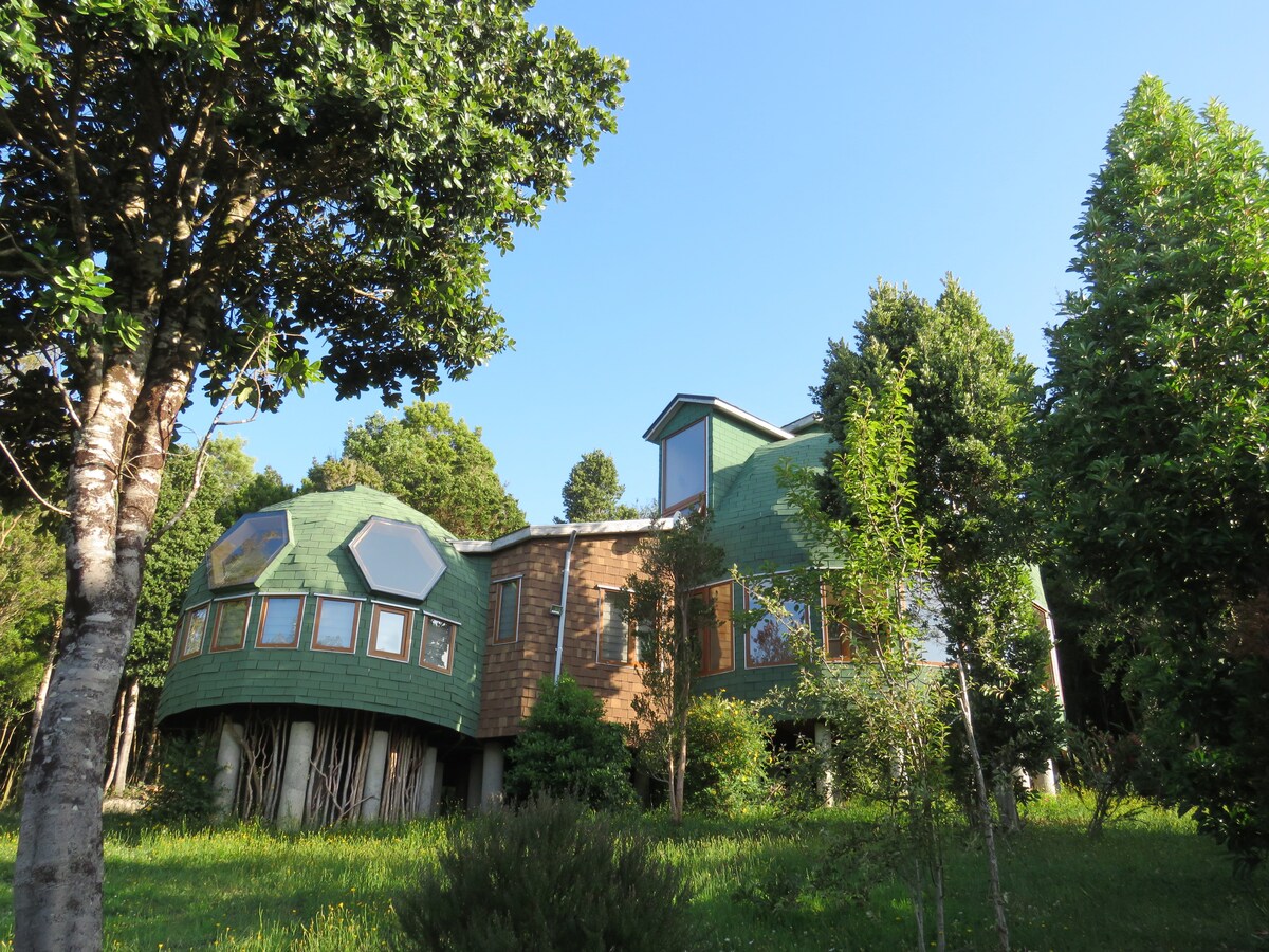 Hus med skov og sø i Parque El Mañío - Chiloé
