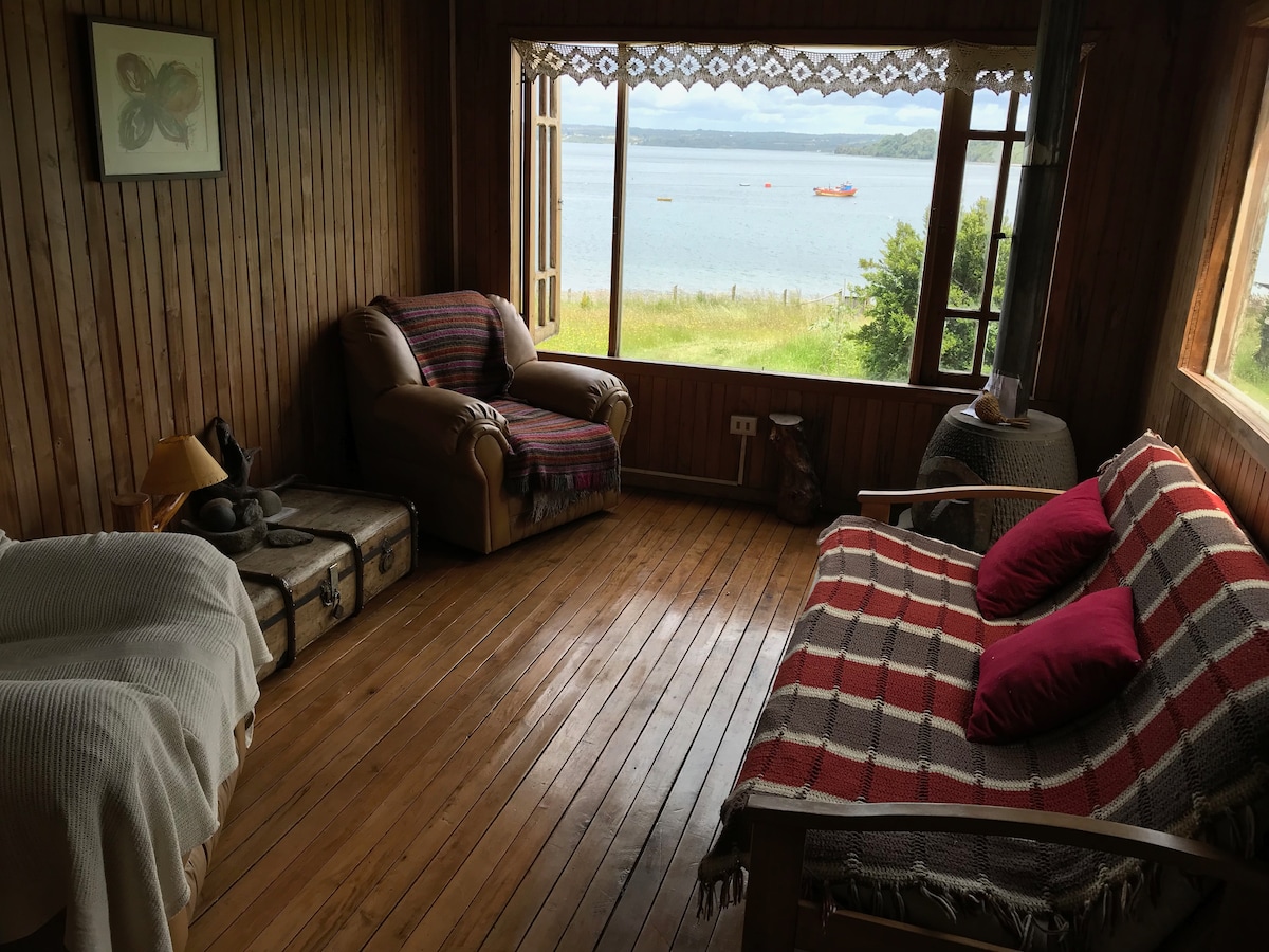 Included in the "11 of the best Airbnbs in Chile" by The Culture Trip. The cottage, of 590 ft2, is in the sector of Yutuy in the peninsula of Rilán, to 35 minutes from Castro and the airport. It is an old cellar of native wood rehabilitated, with a wonderful view to the Bay of Castro, a hot tub for four people and direct access to the beach. It is a perfect starting point for touring the island by land or by sea. You can go to Castro by boat, on a 10-minute trip.