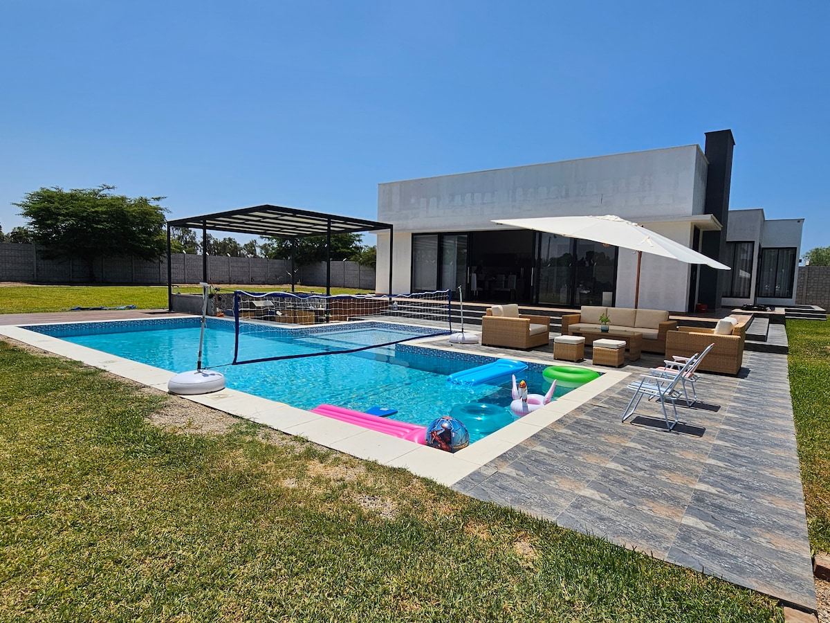 Slap af med hele familien og vennerne i denne stilfulde og fredfyldte bolig. Huset er perfekt til store sammenkomster, tag din gruppe med, og skab minder, nyd det varme vejr, som Chincha Baja tilbyder hele året rundt. Huset tilbyder: En dyb pool med vandfald og lavt område designet til yngre børn. Tagdækket terrasse. Topmoderne grill. Balkoner på anden sal med fantastisk udsigt over solnedgangen. Gå et par skridt til stranden. Det er bare fantastisk 🤩