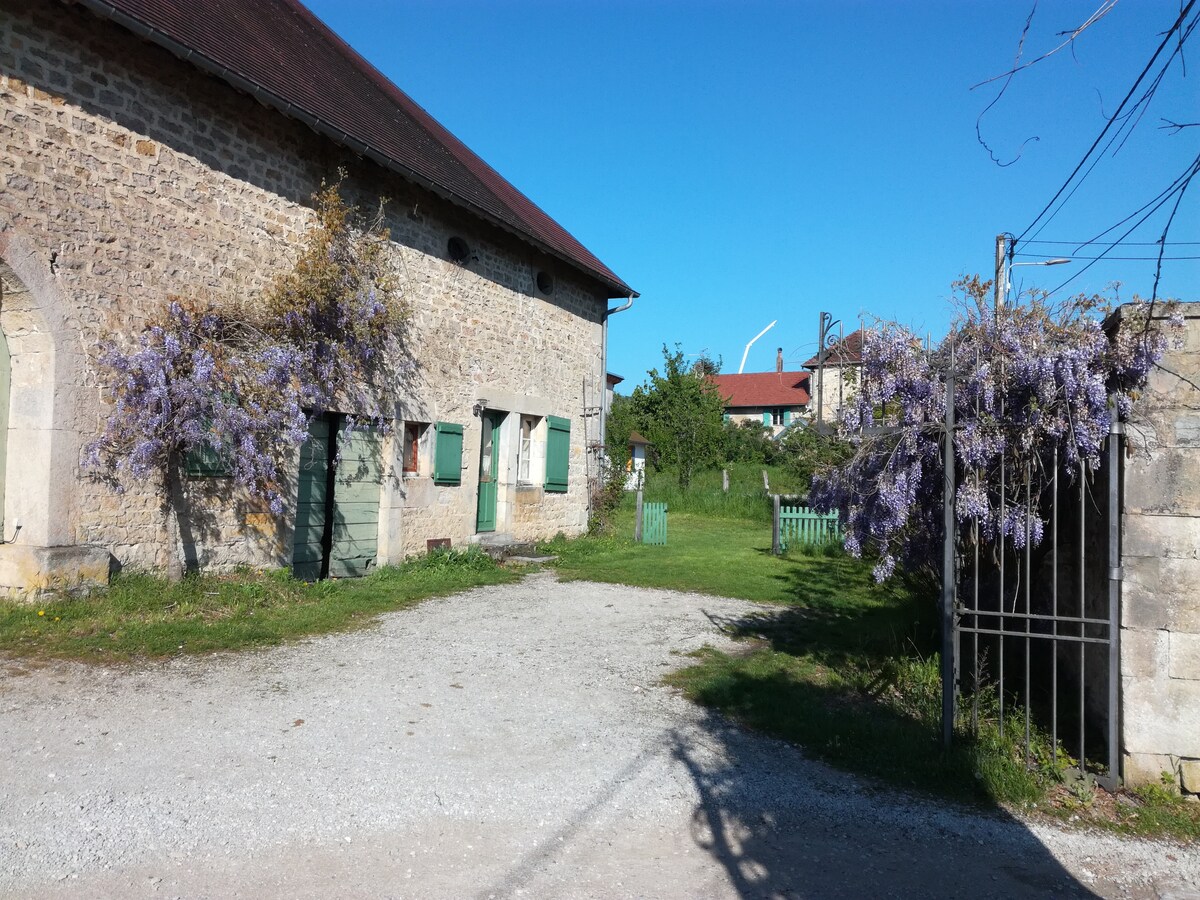 Hele charmen ved denne lejlighed ligger i dens enkelhed og fredfyldte atmosfære. Du finder to værelser i stueetagen, et veludstyret køkken - stue, et soveværelse med en dobbeltseng og tilstødende badeværelse. Du kan benytte terrassen og haven. Ideel til at besøge den kongelige saltmine i Arc-et-Senans (på UNESCOs verdensarvsliste).