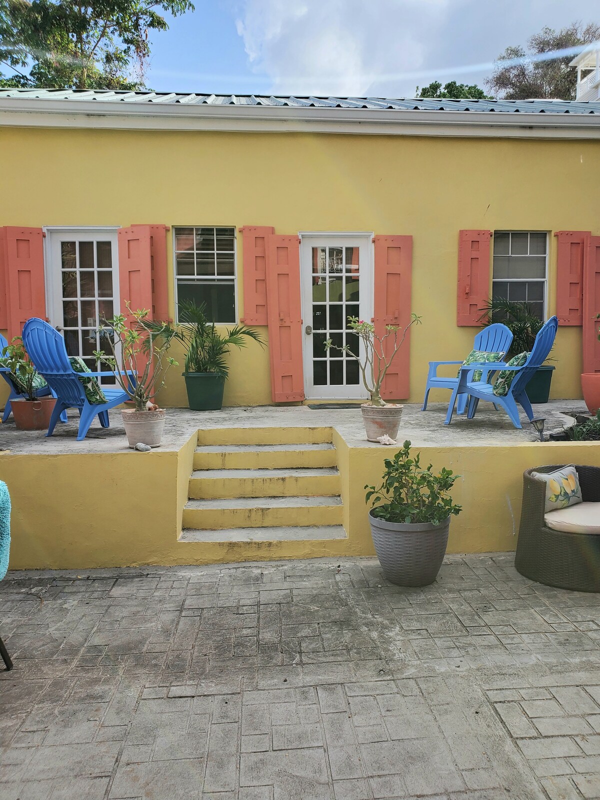 din private lejlighed ligger i en indhegnet tropisk gårdhave, vi har 5 smukke private lejligheder på ejendommen, hvis du ønsker at bo hos venner eller familie eller en gruppe! Vi er beliggende i centrum af Christiansted til alt! med kunst og kulturelle begivenheder, parker og selvguidede gåture og nationale historiske steder samt prisbelønnede restauranter og de mest populære strande! Vi bruger naturlige og økologiske plantebaserede produkter til rengøring, tøjvask og toiletartikler.