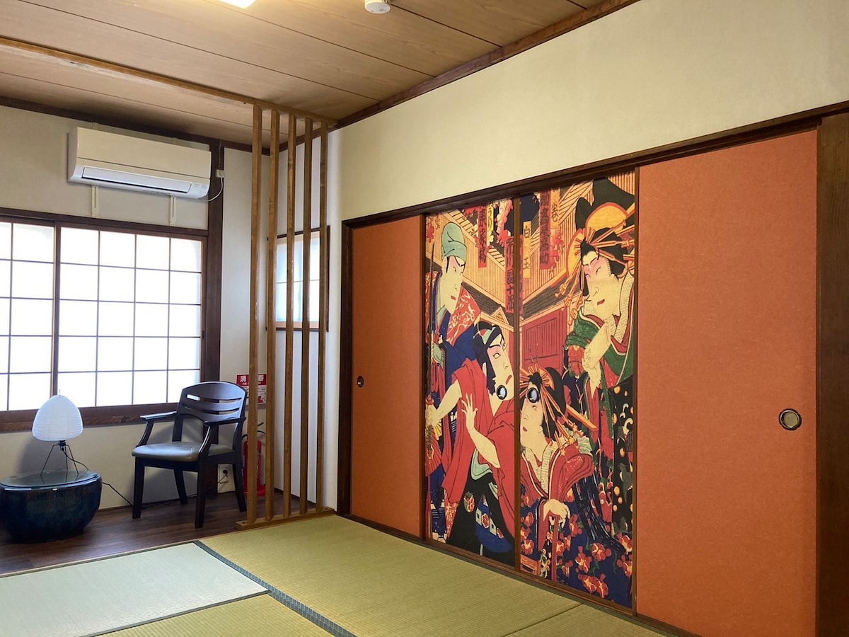 🏡 [Tæt på centrum, 2DK privat udlejning] Slap af på tatamimåtter, Kumamoto Local Stay Vi har forberedt et værelse, hvor du kan opleve at "bo som du lever" i en gammel lejlighed. Det ligger i et roligt boligkvarter tæt på byen og kan rumme op til 4 personer. 1 ✔ dobbeltseng + 2 futoner (2DK) Med ✔ køkken anbefales det til selvforsyning og længerevarende ophold Afslapning i et rum✔ i japansk stil med tatamimåtter ✔ Kumamoto-slottet og det populære Shinmachi-område ligger cirka 10 minutter væk på cykel Cirka 12 minutter til fods til✔ sporvognsstationen "Danzancho"/Cirka 20 minutter til fods til Kamikumamoto-stationen Gratis parkering 200 meter fra✔ stedet Jeg elsker Kumamoto, og jeg har skabt dette rum i håbet om, at mange mennesker vil nyde denne by. Bemærk, at dette er en simpel bolig, så vi har kun minimale faciliteter, men vi har indrettet den, så den er billig.