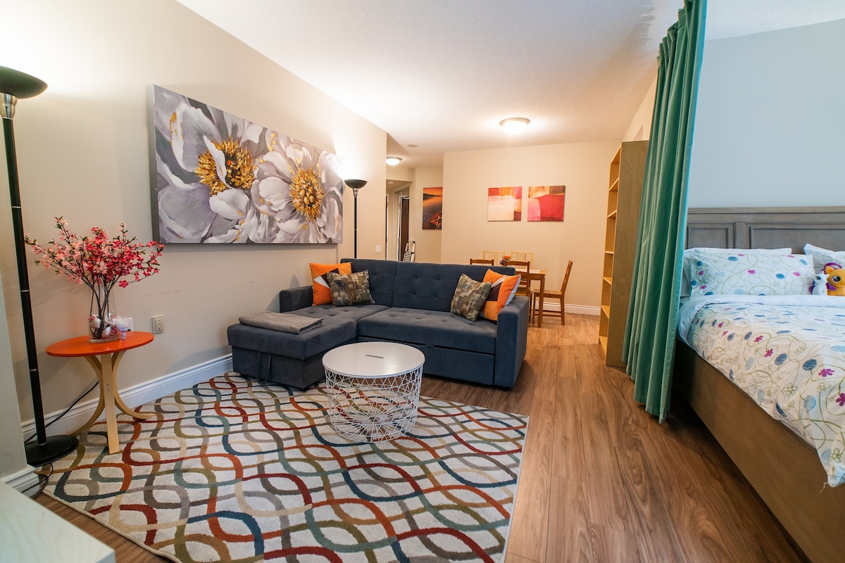 Discover your urban retreat in this spacious 500-square-foot room in downtown Toronto, just a short walk from Yorkville. This suite features a king size bed, fully equipped kitchen, ideal for meals, along with a separate living area filled with natural light and a cozy dining space. Enjoy the privacy of a separate bedroom and a well-appointed bathroom. This is the perfect place for extended stays, just a 5-minute walk to the Yonge-Bloor subway station—ideal for exploring the city!