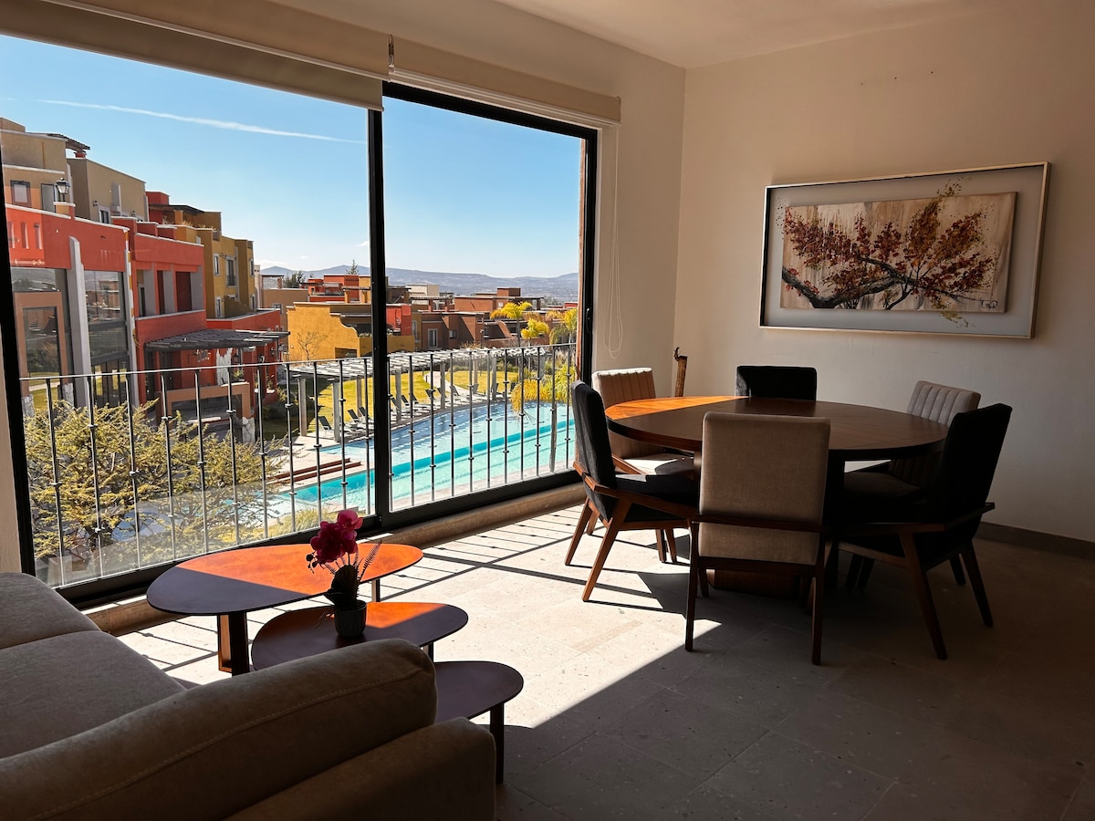 Lev en boutique-oplevelse i "Casa Olivos", en oase af ro kun ti minutter fra det pulserende hjerte af San Miguel de Allende. Vores toværelsesbolig kombinerer moderne design og komfort, taghave med panoramaudsigt og eksklusive fællesområder, herunder paddle tennisbane, fitnesscenter, pool og legeområde. En perfekt balance mellem den kulturelle rigdom i det historiske centrum og roen i vores lejlighed.