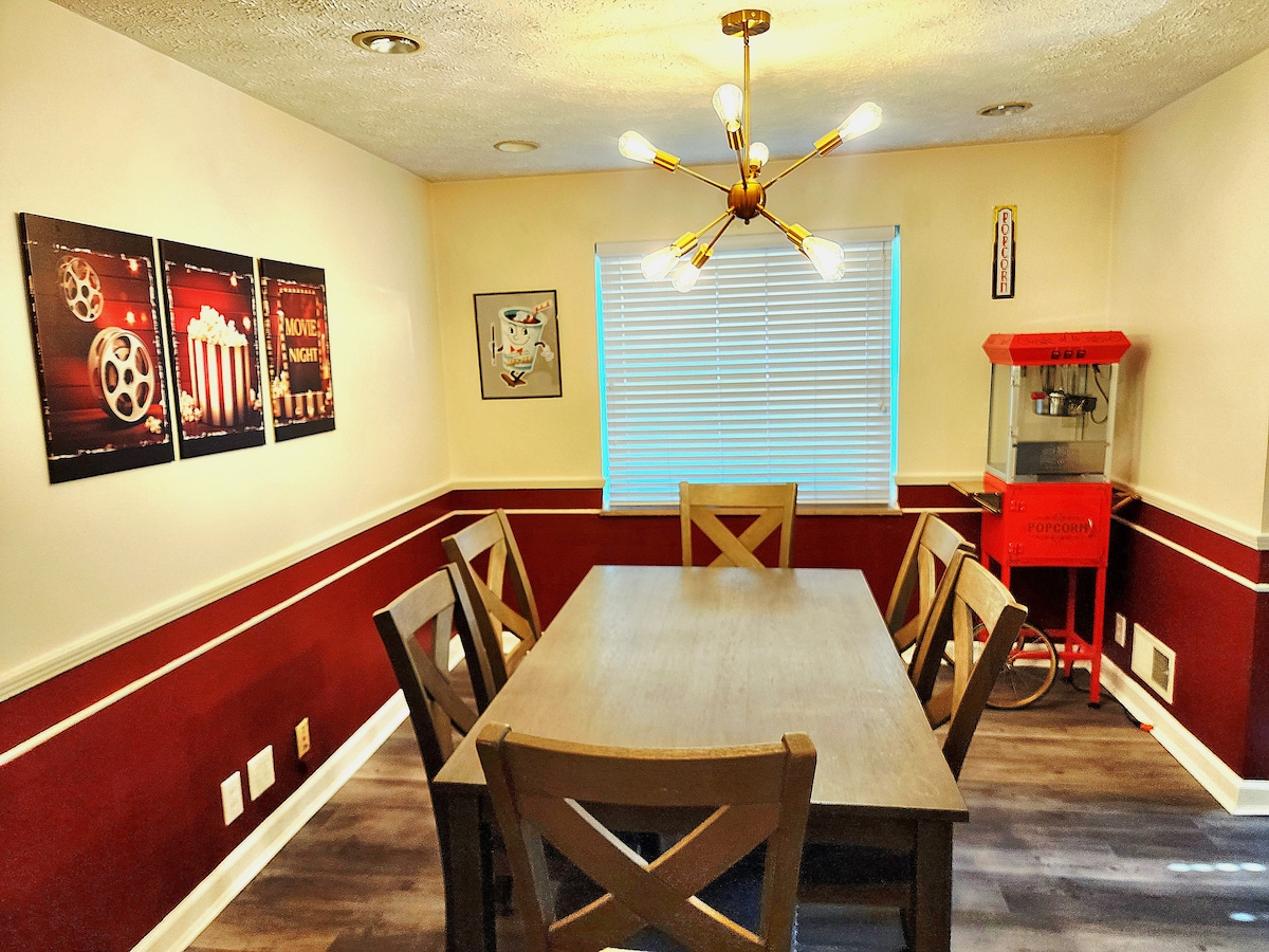 Dette unikke sted ligger tæt på alt, hvilket gør det nemt at planlægge dit besøg. (Klik på Vis mere for at få flere oplysninger) Den har et biograftema, så du kan se dine yndlingssport eller -film på 85" tv med DirecTV Ultimate-pakken, biografsæder til seks og din egen popcornmaskine. Der er også et 50" tv i soveværelset og vaskemaskiner inde i enheden. Oplev ægte komfort og bekvemmelighed fra vores senge til vores veludstyrede køkken til gratis parkering på gaden.