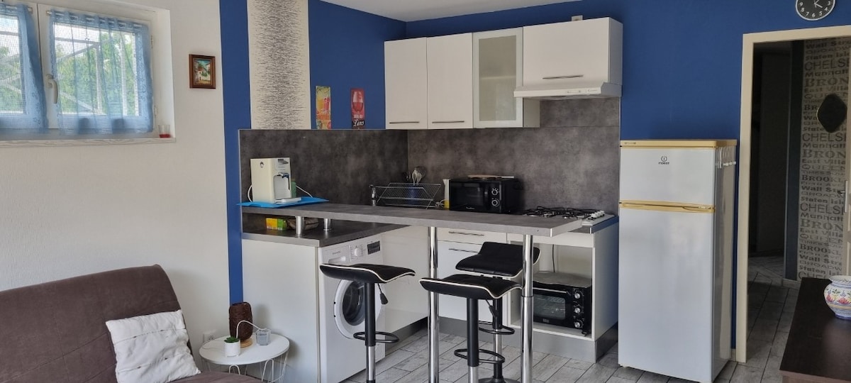 Outbuilding 60 m2 totalrenoveret i hjertet af en lille landsby. Stille miljø meget skovklædt med mange skovstier i gåafstand fra hytten. Landsbyen i udkanten af Toulouse og Foix (36 km på hver side). Stueetagen: badeværelse og stue/stue/køkken udstyret Etage - 2 soveværelser på loftet TV/WIFI/KLIMAANLÆG, indhegnet og møbleret udendørs område (23 m2) Sengetøj og håndklæder til babyer er mulige mod et ekstra gebyr (5 €)