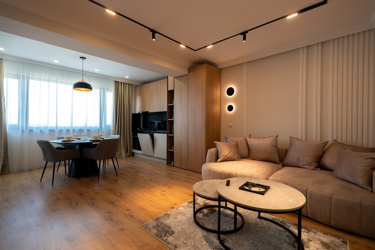 Oplev en moderne lejlighed, hvor elegance blandes med komfort, ideel til både afslapning og arbejde. Den private gårdhave er et lille stykke natur, hvor du kan nyde din morgenkaffe, ro efter en travl dag eller behagelige aftener udenfor. Det giver nem adgang til restauranter i Albert-kvarteret, Mall Shopping City, hurtig adgang til DN1 Bukarest-Brasov og byens centrum. Faciliteter - hurtig wi-fi, udstyret køkken, behagelig seng.
