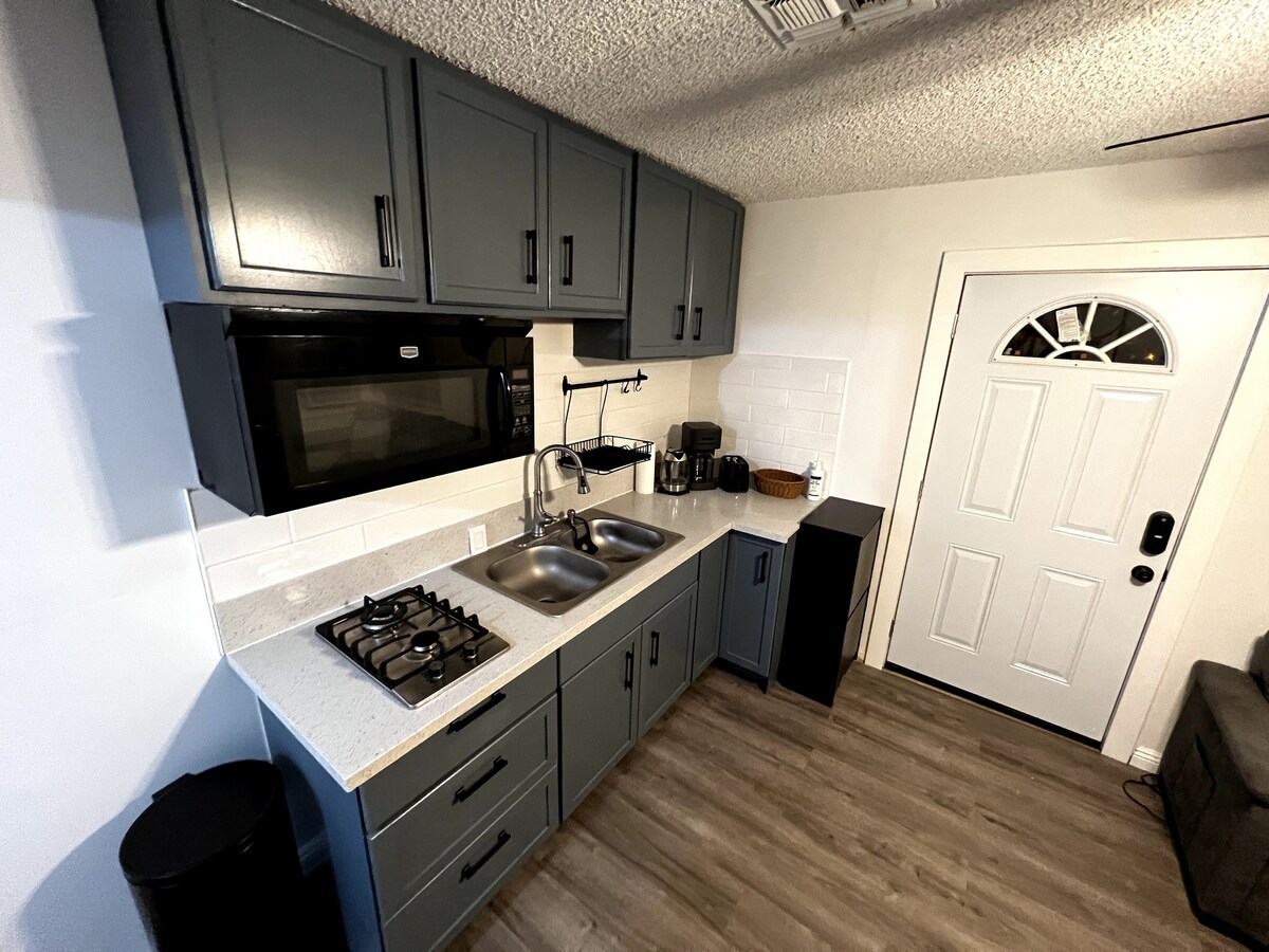 Dette er et charmerende fuldt renoveret gæstehus, der er bygget bagerst i vores bolig. Vi ligger i et fredeligt forstadskvarter. Værelset har en enkeltseng, privat badeværelse, egen indgang, udpeget parkeringsplads, mikrobølgeovn, lille køleskab, kaffemaskine, kogeplade med to kogeplader, strygejern/strygebræt; varmeapparat og klimaanlæg. Der er også en terrasse, hvor du kan sidde for at nyde det friske vejr i Californien. Bemærk, at vi beder alle gæster om at indsende et myndighedsudstedt id inden indtjekning.