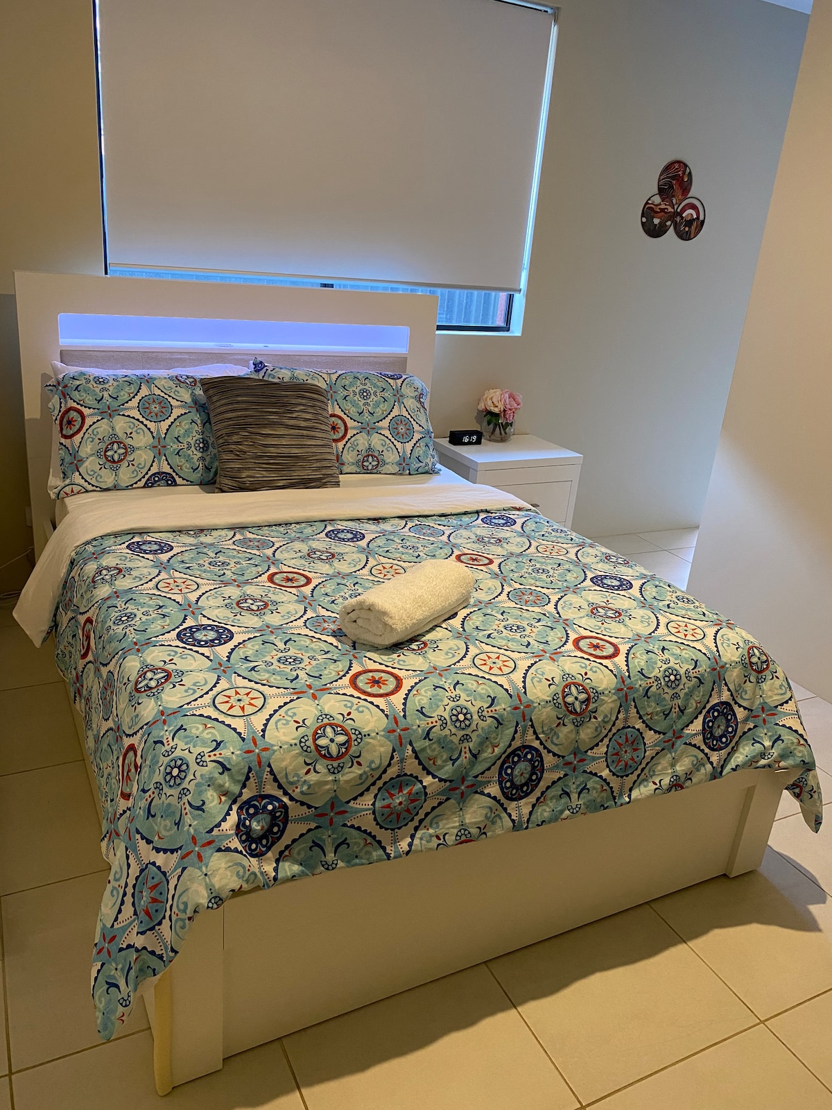 Velkommen til vores selvstændige suite med 2 soveværelser, en lys og hyggelig bolig, der er designet til din komfort. Slap af i den komfortable queensize-dobbeltseng, og nyd bekvemmeligheden ved et tekøkken med gratis te, kaffe, mælk, madolie, salt og peber. Vores enhed har et smart-tv, privat vaskemaskine og tørretumbler, barneseng, høj stol og et udendørs siddeområde. Uanset om du er på besøg i forbindelse med forretning eller fritid, tilbyder denne rolige, selvstændige bolig alt, hvad du har brug for til et afslappende og stressfrit ophold.