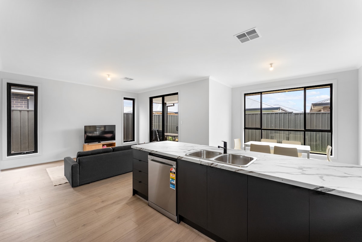 Du har nem adgang til butikker fra vores villa med 4 soveværelser i Blakes Crossing (Blakeview). Med 6 senge (for op til 10 gæster) er vores ophold ideelt for grupper og store familier. Med sikker garageparkering, to badeværelser, kæledyrsvenligt og fuldt udstyret køkken og køleanlæg. Du er kun 3 til 5 minutters gang fra to supermarkeder, butikker, spisesteder, en café og et fitnesscenter med nem adgang til byen og lufthavnen (45 minutters kørsel) og to store indkøbscentre og Gawler (en nem 5-10 minutters kørsel).