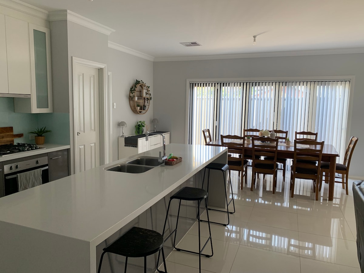 Tag din familie med til denne rummelige, komfortable bolig med masser af værelser til sjov. Huset har 3 soveværelser, det største med eget badeværelse og walk-in garderobe. Tilbered dine måltider i et moderne køkken, og sæt dig derefter ned for at nyde dem i et stort åbent område med udsigt over haven. Kontorplads er også tilgængelig. Boligen ligger i gåafstand til North Park, Churchill Centre og Prospect Village hub med biograf, trendy caféer og gourmetspisesteder. Det tager kun ca. 5 minutters kørsel til byen.
