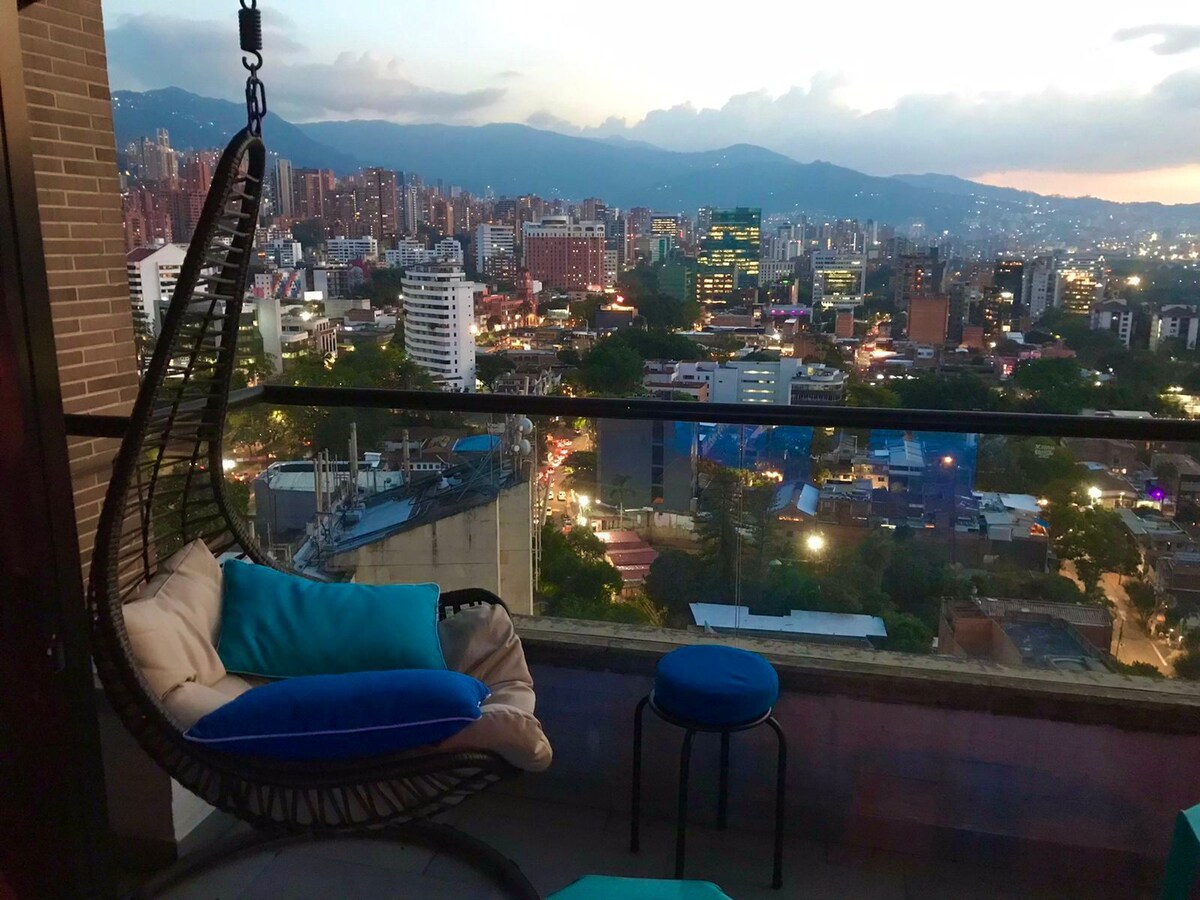 [C] Poblado Heights|19th FL View|AC|Spa|Sauna