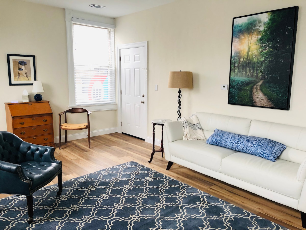 Dette opdaterede stilfulde 2 seng/1,5 badeværelse enkeltetagers gæstehus er perfekt til arbejde, grupperejser, sjov eller familiebesøg. Køkkenet har service, køkkengrej og basisting (olie, krydderier, sukker og mel). En Keurig enkeltportion og karaffel kaffemaskine med k-kopper og kaffefiltre er til rådighed. Gæstehuset har to opholdsrum, en spisestue, et køkken, et vaskerum med vaskemaskine og tørretumbler, en privat terrasse med udendørs siddepladser og en grill.