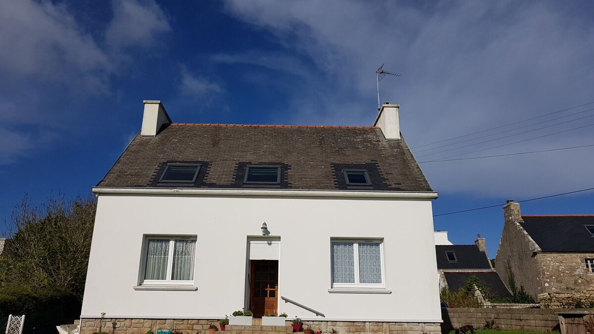 Lille Bretonne hus ideel til natur- og enkelhedselskere, beliggende i en lille landsby mellem hav og landskab. Bukolisk sted, rolig og enkel. 2 små haveområder med bord, hav- og havudsigt. 5 minutters gang fra 2 fantastiske strande (500 meter GR34) Tv, wifi, køkkenhjørne. 15 km fra Douarnenez og Audierne 20 minutter fra Pointe du Raz eller den smukke landsby Locronan. 3 senge, (barneseng og høj stol til baby) te, kaffe til rådighed.