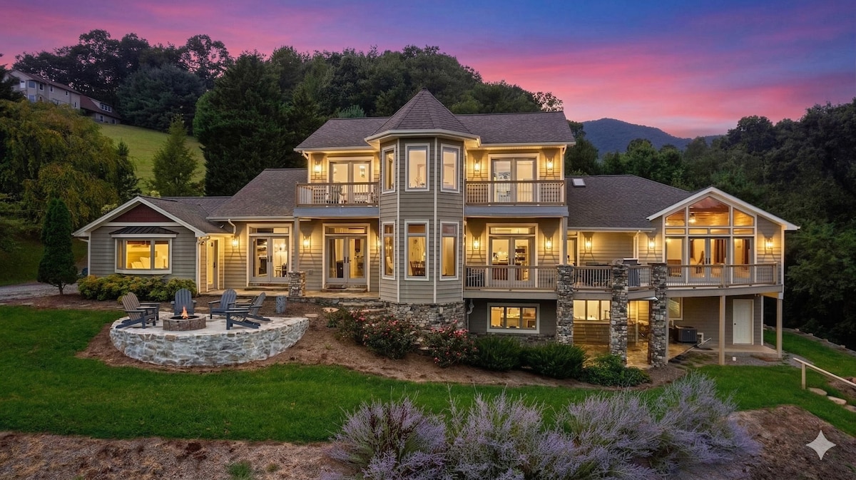 Ikke bare et rum med udsigt... men en hel bolig med UDSIGT og masser af ejendom for privatlivets fred og oplevelsen af "A Picture Perfect Mountain Chalet" Slap af og nyd langtrækkende bjergudsigt fra stuen og terrasserne i denne fantastiske 2 soveværelser/2 badeværelser hjem. Moderne køkken åbner op til en stenbelagt pejs og store vinduer, masser af udendørs plads til at nyde naturen, for nylig ombygget for at få en moderne, men rustik appel, på 25+ hektar med vandrestier på stedet - nær Waynesville og Asheville.