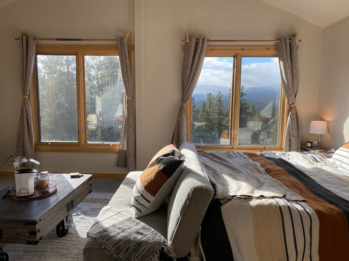 Jaw-dropping mountain views at 8600' high! That is what you will experience in this paradise from your exclusive suite. Enjoy, relax and chill on these 3+ acres overlooking the Rockies. Breathtaking place to sip an adult beverage, escape the city and recharge. Your suite includes a bedroom, bath, separate sitting/ dinning room and private entrance. Wildlife abounds from your window or go hiking and explore on your own. We look forward to meeting you!
