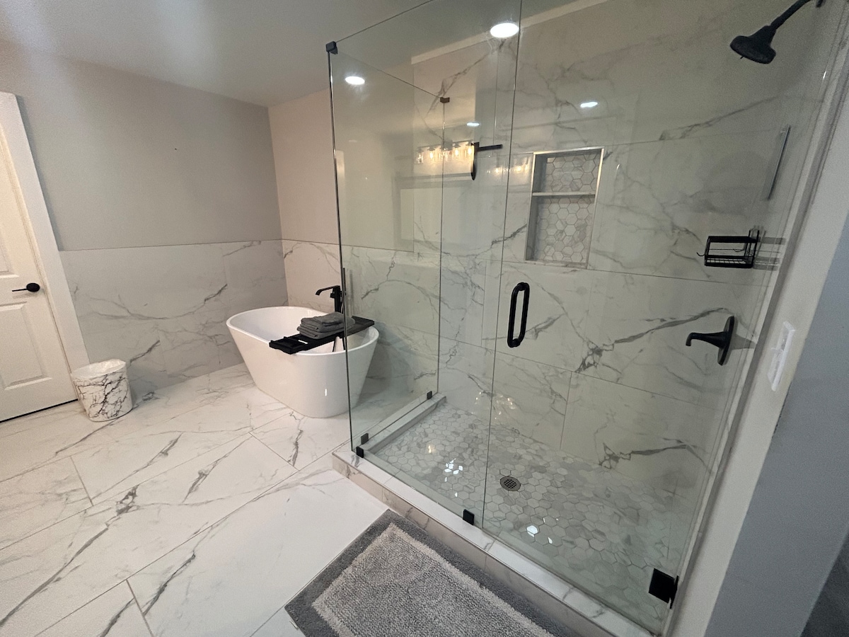 Denne rummelige bolig i Marietta er perfekt til familier, grupper, rejsesygeplejersker og længerevarende ophold. Den har plads til 8 personer og tilbyder hurtig wi-fi, smart-tv, en hyggelig stue, en indhegnet baghave med bålplads, et fuldt udstyret køkken og et sjovt spilrum, som alle kan nyde. Du er få minutter fra Marietta Square, gode restauranter, hospitaler, shopping og kun 20 minutter fra Truist Park, The Battery og Midtown/Downtown Atlanta. Boligen har også gratis parkering med hurtig adgang til I-75 i et roligt, sikkert nabolag