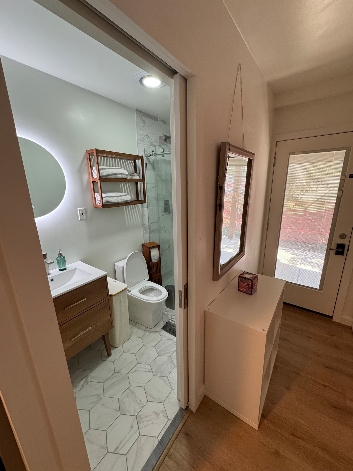 Bring your pets and enjoy a stay 1 mile from Canton Street and all that downtown Roswell has to offer. It’s also convenient to the Perimeter area, Buckhead and Alpharetta. The guest suite is located on the lower level of our home and has a private entrance with a smart lock for a fully contactless check-in experience. Completely remodeled, the guest space offers modern and comfortable accommodations. Be sure to take advantage of the swinging bed under the string lights on your private patio.