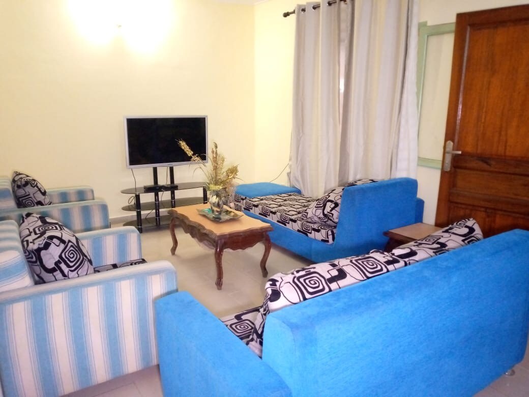 Elegant renoveret duplex, beliggende i hjertet af Cocody, 2 skridt fra hotel Ivoire. Hypertilgængeligt område med hurtig adgang til Plateau, 3. bro, II Plateaux, Riviera. Rummelig, lys, udstyret med alle moderne faciliteter, har duplexen 3 soveværelser, 1 skrivebord, 2 SDD, 1 have, 1 terrasse og 1 baggård, der giver dig mulighed for at nyde udendørslivet på alle tidspunkter. Stille omgivelser. Ikke egnet til fester. Rengøring udføres to gange om ugen.