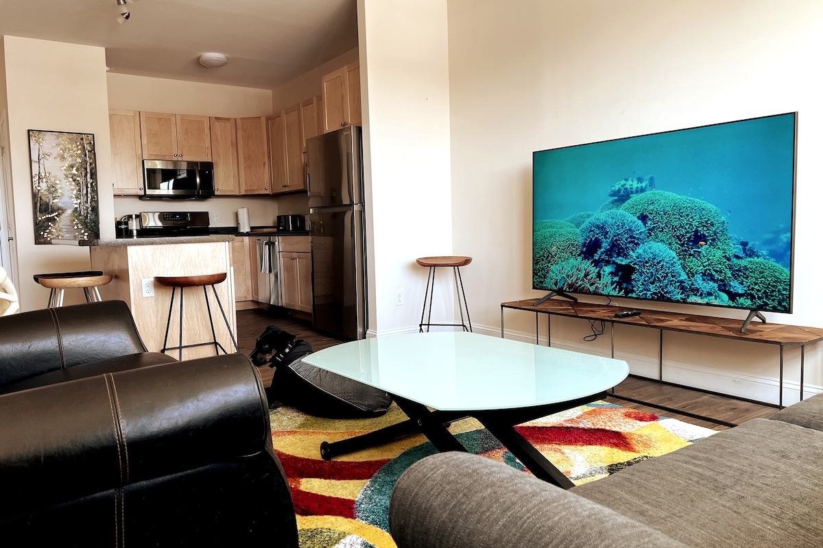Mens du venter på indtjekning: pvt hundeløb og restauranter på stedet! Fremragende drinks og spisesteder på første sal med mange flere restauranter en kort gåtur væk! 2,5 m til Church St, 1+m til UVM, Riverwalk og bryggerier. Uanset om du er her for at tage på pisterne, udforske strandene eller prøve lokale øl på Four Quarters-bryggeriet, kan du nyde vores fuldt tilgængelige beliggenhed for dine Champlain-eventyr ved søen. Book nu for at få det bedste af Vermont.