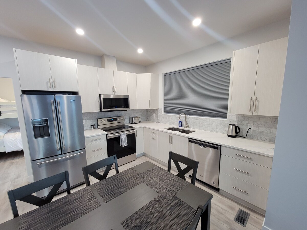 Bekvemt tæt på flere strande, herunder imponerende Kal Beach. Hvis du er udendørsentusiast, er du inden for få minutter fra 5 provinsparker, hvor du kan udforske de udendørs muligheder i verdensklasse, som Okanagan-dalen byder på. Er du golfspiller? Predator Ridge, The Rise, Vernon Golf og Country ligger alle inden for få minutter. Er du snowboarder/skiløber? Silverstar ligger lige oppe ad bakken. Kom og udforsk i dag. *Indendørs låst opbevaring kan stilles til rådighed, hvis det er nødvendigt for mountainbikes/kajakker osv.