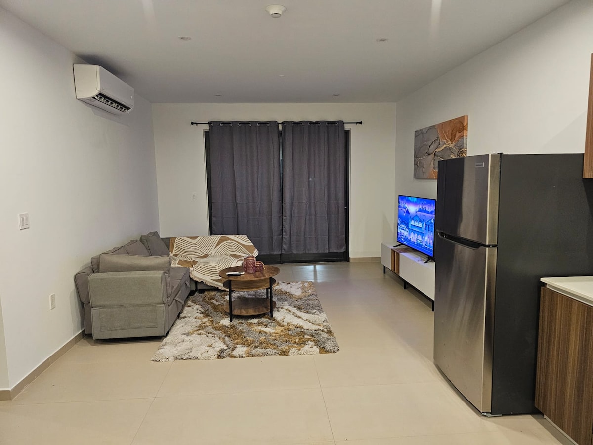 Denne luksuriøse lejlighed er blevet ombygget i 2025 og er klar til gæster, der søger en stilfuld lejlighed med pool. Rummet har et helt nyt køkken og badeværelse og har alt, hvad du måtte have brug for under din ferie. Nyd den private saltvandspool, og slap af på terrassen i loungestolene og komfortable siddeområder. Udendørsområdet er smukt indrettet, og vi tilbyder en grill, hvis du kan lide et hjemmelavet måltid. Den smukke tropiske have og den betagende havudsigt fuldender oplevelsen.